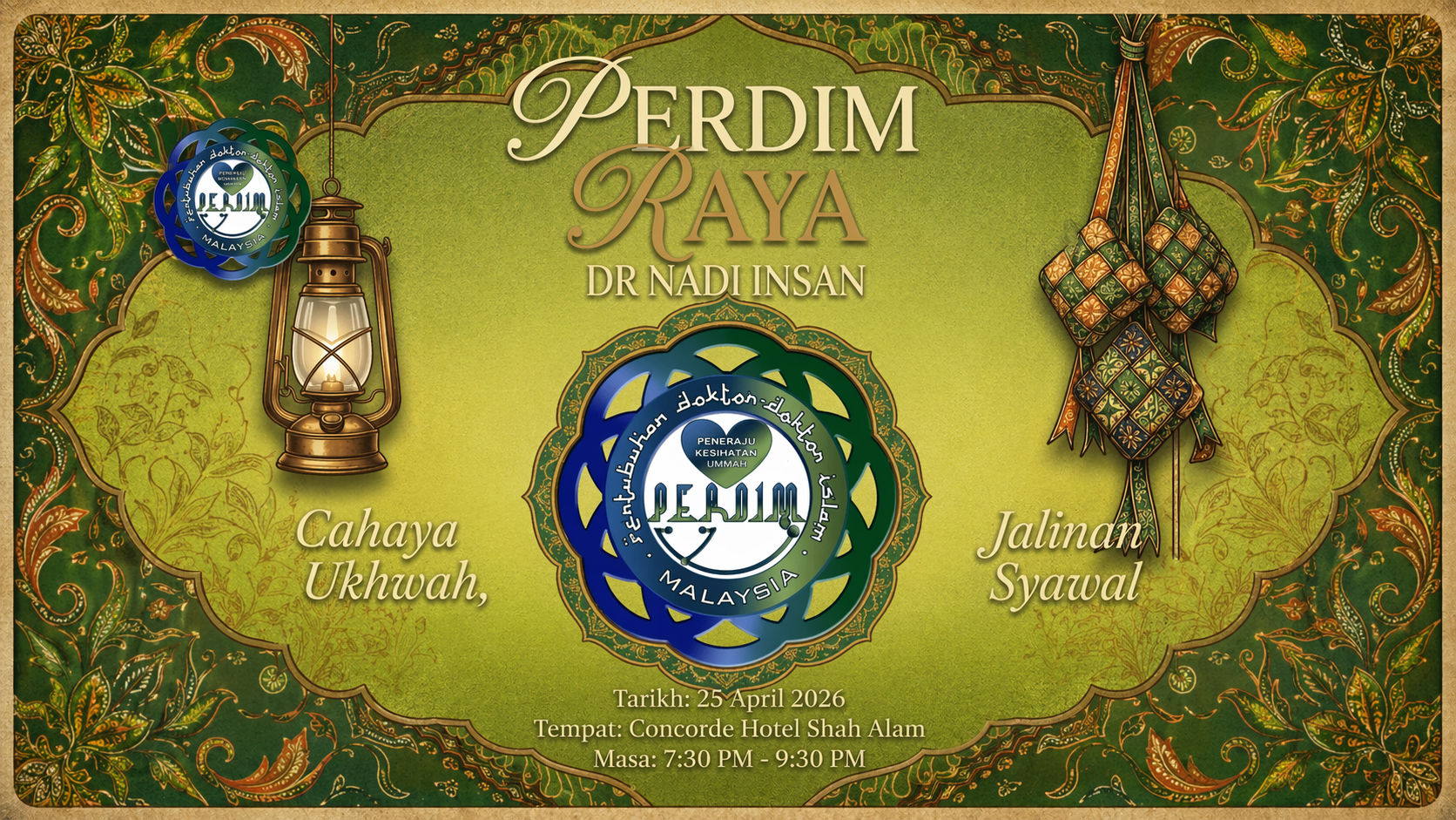 📅 Tarikh: 25 April 2026 📍 Tempat: Concorde Hotel Shah Alam 🕢 Masa: 7:30 PM – 9:30 PM Tema Pakaian : Batik ✨ Bertemakan “Cahaya Ukhuwah, Jalinan Syawal”, majlis ini bertujuan mengeratkan silaturahim serta memperkukuh ukhuwah sesama ahli PERDIM. 💳…